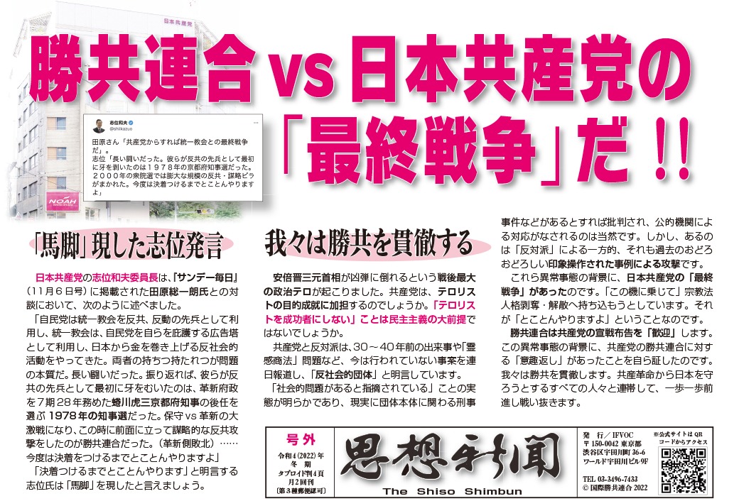 | 006 | 名無しさん | 2025/12/20(土) 09:07:46 | 統一教会が南のカルト宗教なら、共産党は北 | 画像なし |