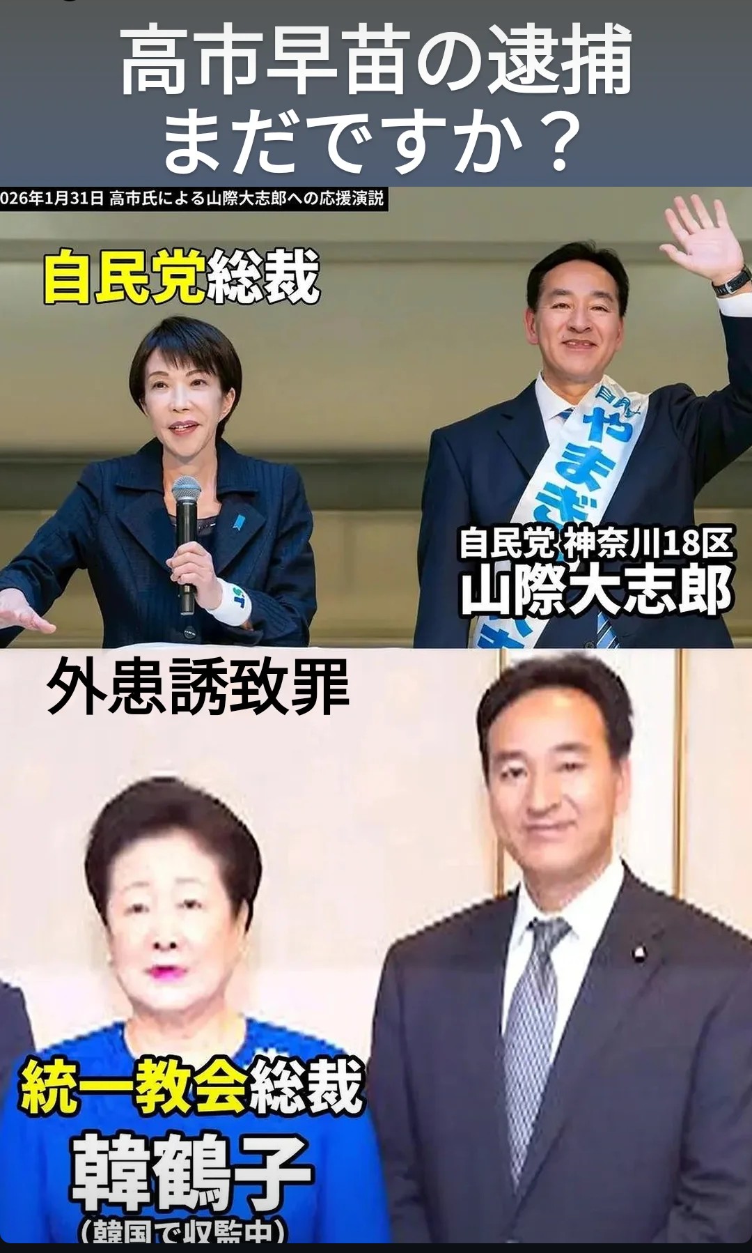 | 007 | 名無しさん | 2026/03/22(日) 12:46:44 | 高市早苗の逮捕まだですか? 外患誘致罪 | 画像 |
