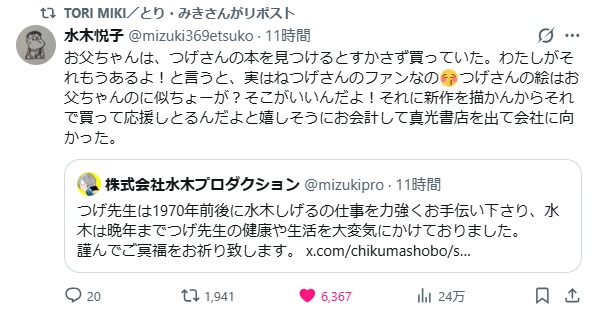 | 019 | 名無しさん | 2026/03/28(土) 09:22:59 | 水木先生との関係、泣けますね | 画像 |