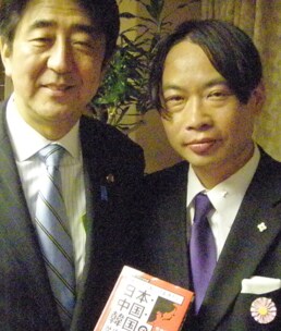 画像は安倍総理と写真を撮る第73世武内宿禰こと故・竹内睦泰氏。吉田茂とは同じ竹内一族。