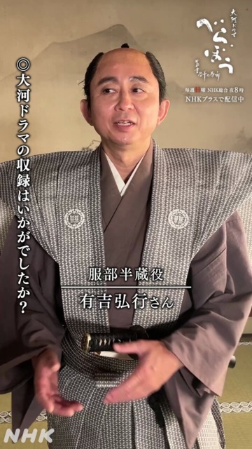 NHKは演じる服部半蔵について、「あの服部半蔵の末裔。松平定信から留守の白河を任されていた人物で、ある知らせを定信に伝えにくる」と紹介した。有吉の大河ドラマ出演は初めて。