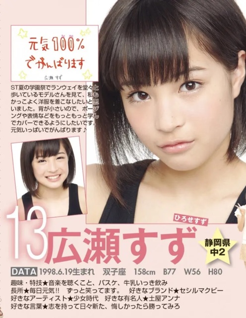 広瀬は、姉の広瀬アリスが雑誌「Seventeen」の専属モデルをしていた12年に14歳で同じく「Seventeen」の専属モデルとして芸能界入りした。