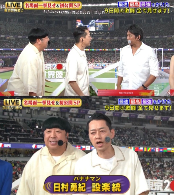 そしてもうひとつ、『世界陸上』最終日の終盤、TBSで多くの番組を持つお笑いコンビ・バナナマンが登場したことにも、“雰囲気がぶち壊し”だと憤る声が多いんです」(前出の女性誌編集者)