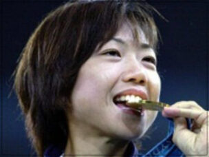 金メダルを振り上げて、あんた俺を怒らせたらメダルに噛みつくぞと脅迫さ、、、、いや、なんでもない