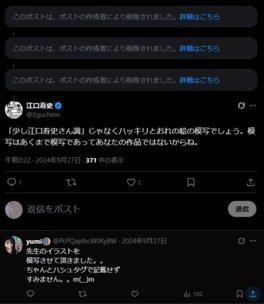 この騒動は、江口氏の過去発言との整合性も問われている。江口氏は以前、他者の模写作品に対して「模写はあなたの作品ではない」と厳しく批評していたことが指摘され、