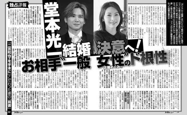 堂本は「私事で恐縮ですがこの度、堂本光一は結婚する運びとなりましたことをこれまでの歩みを支えてくだった関係者の皆さまへご報告させていただきます」と報告。