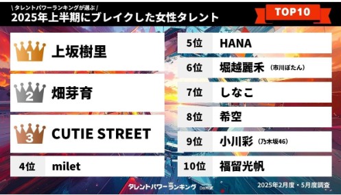 2025年上半期にブレイクした女性タレントのランキングを発表しました。