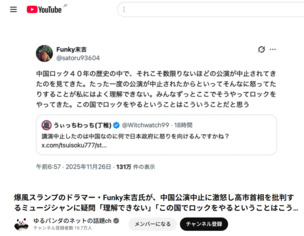 ファンじゃないけど、中国のコンサートが中止になった時のコメントが秀逸です。