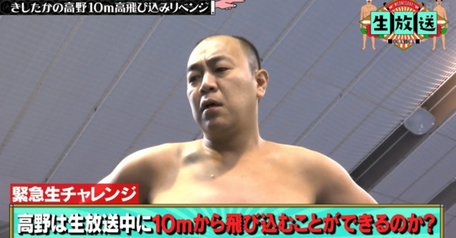 TBS系バラエティー『水曜日のダウンタウン』(毎週水曜 後10:00)で、2週にわたって行われた、きしたかの高野による「10メートル高飛び込みリベンジ」について私見をつづった。