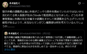 不祥事発覚後、原作者として描かせてた漫画がさっき配信停止になったらしい